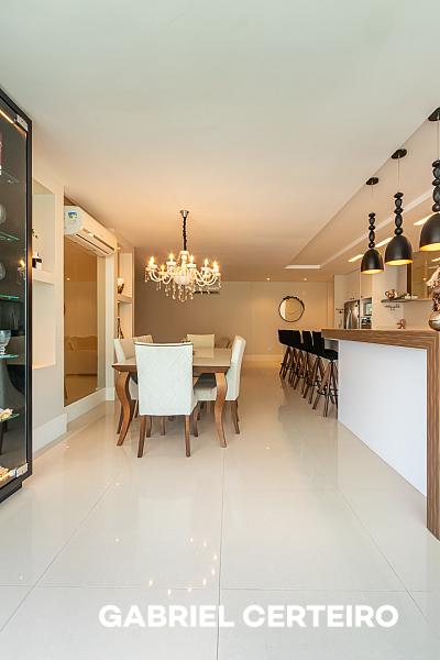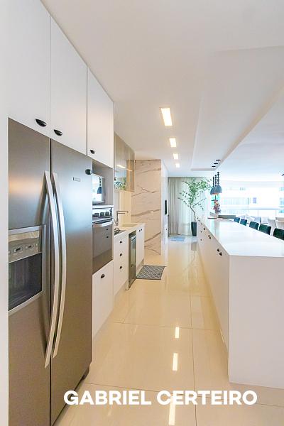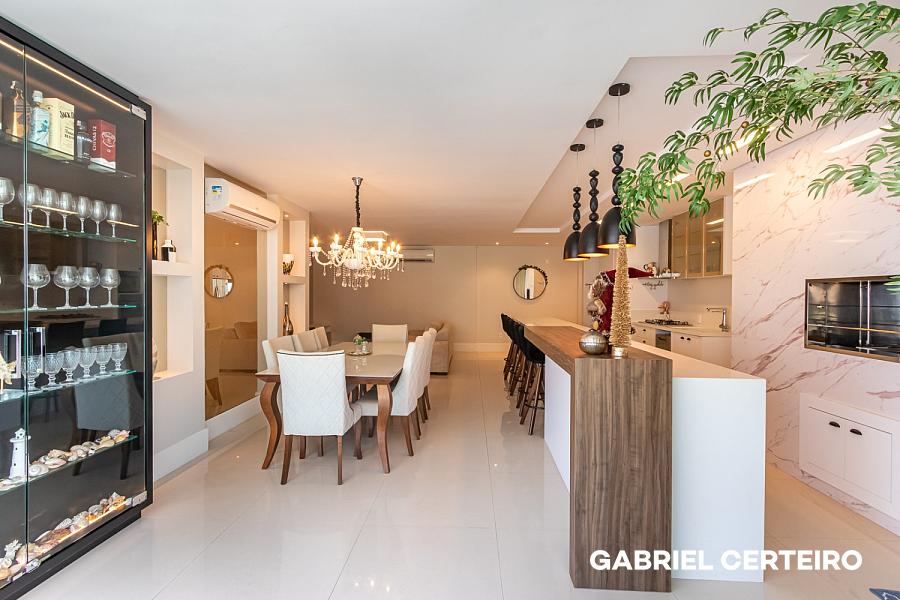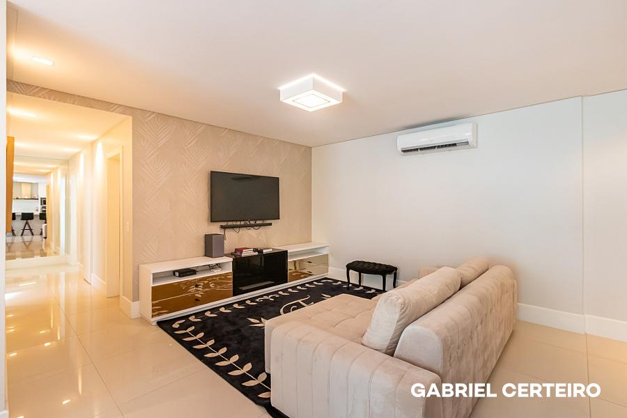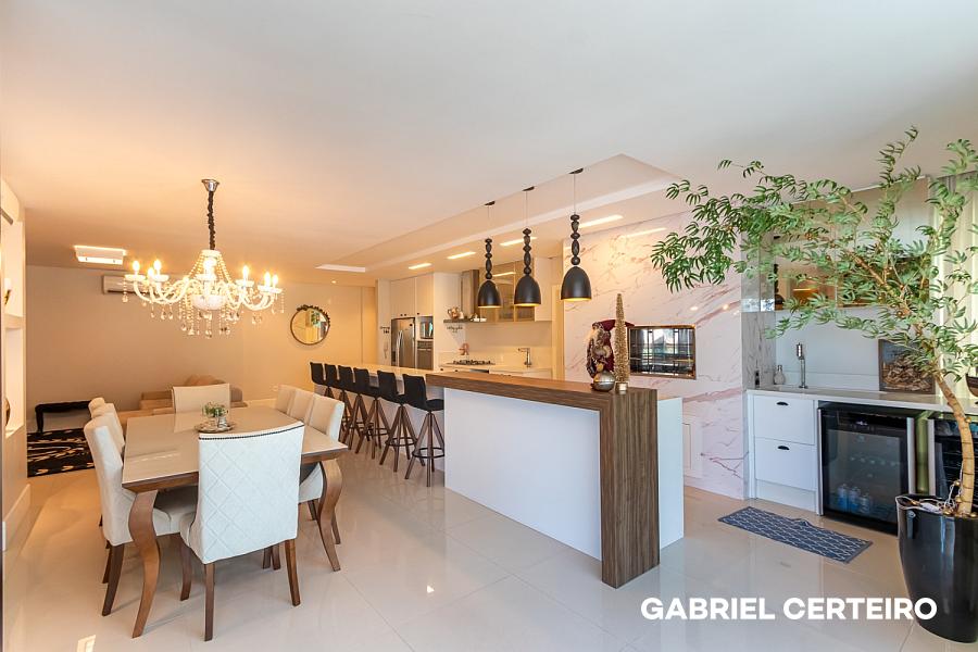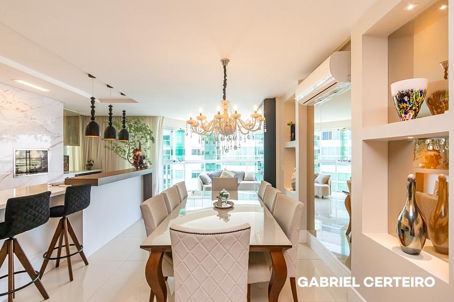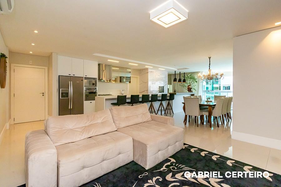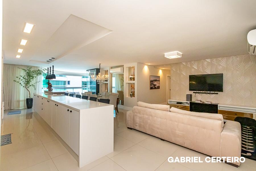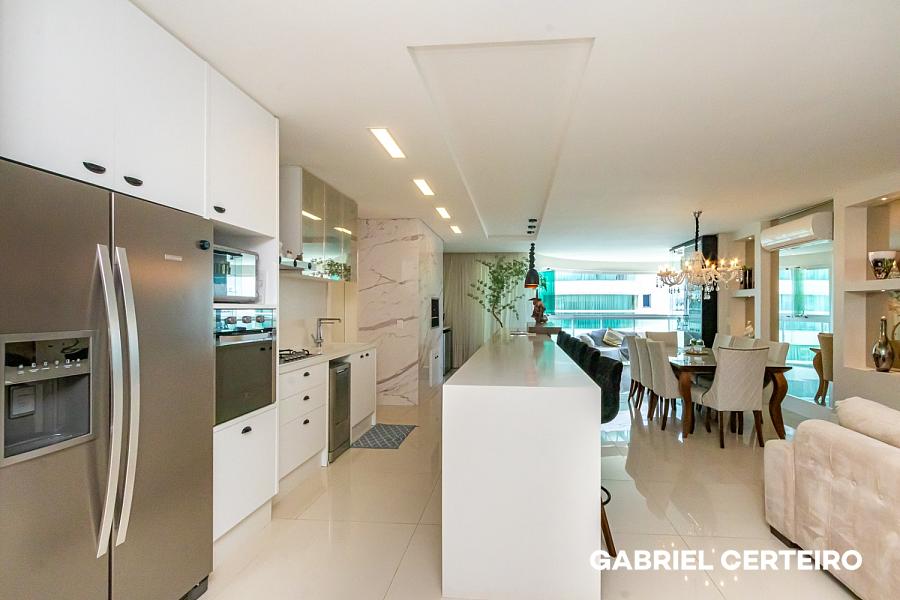 Apartamento de 199m² privativos com dormitórios sendo 3 suítes com sacada, 1 dependência, lavabo, espaço gourmet, sacada integrada, 4 vagas de garagem, mobiliado e equipado, persianas automáticas e andar alto.