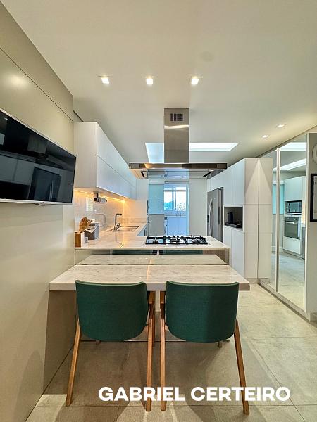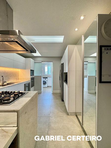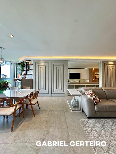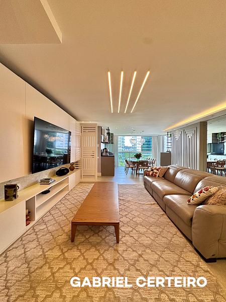Este apartamento de 190 m² oferece uma planta ampla e funcional, com 3 suítes, dependência de serviço e uma suíte master com sacada privativa e banheira de hidromassagem. A unidade está 100% mobiliada e equipada, pronta para morar, com face norte, lateral leste e fundo sul, garantindo excelente iluminação natural — além de uma vista mar privilegiada.