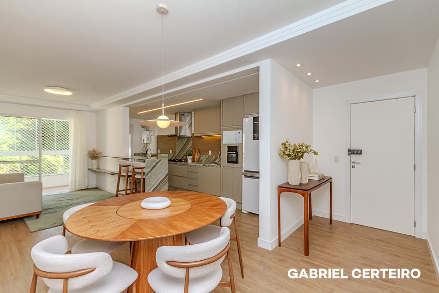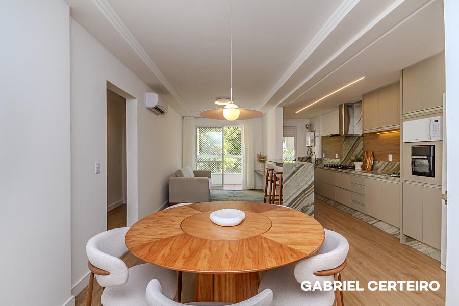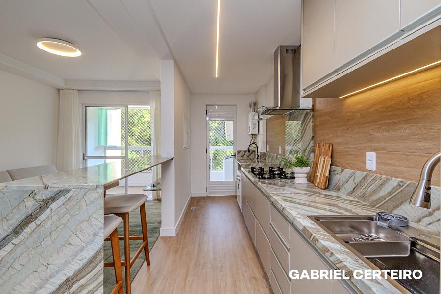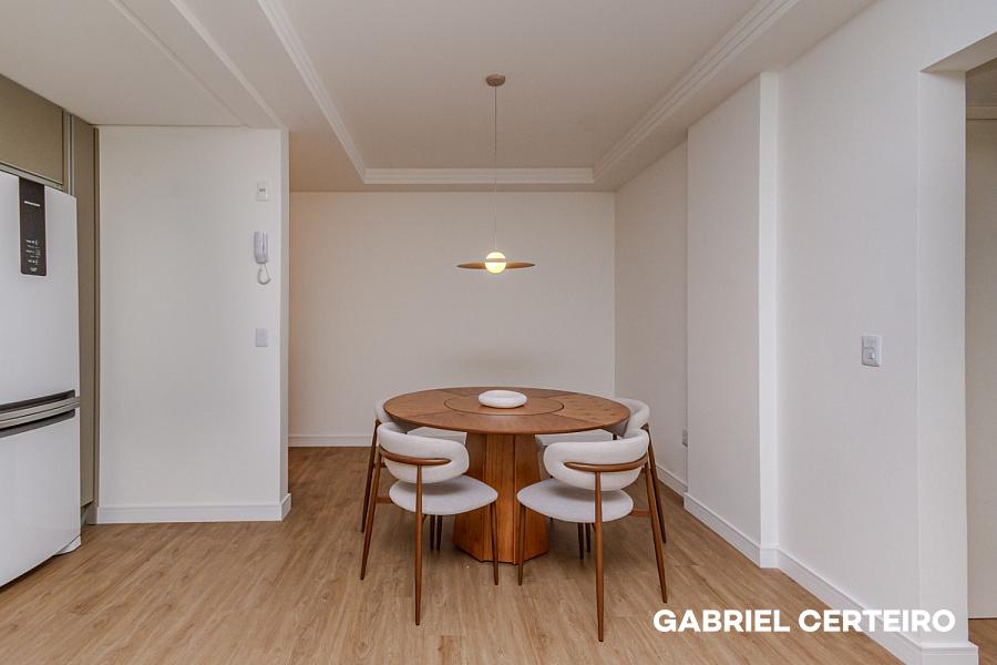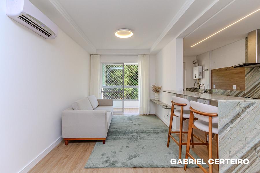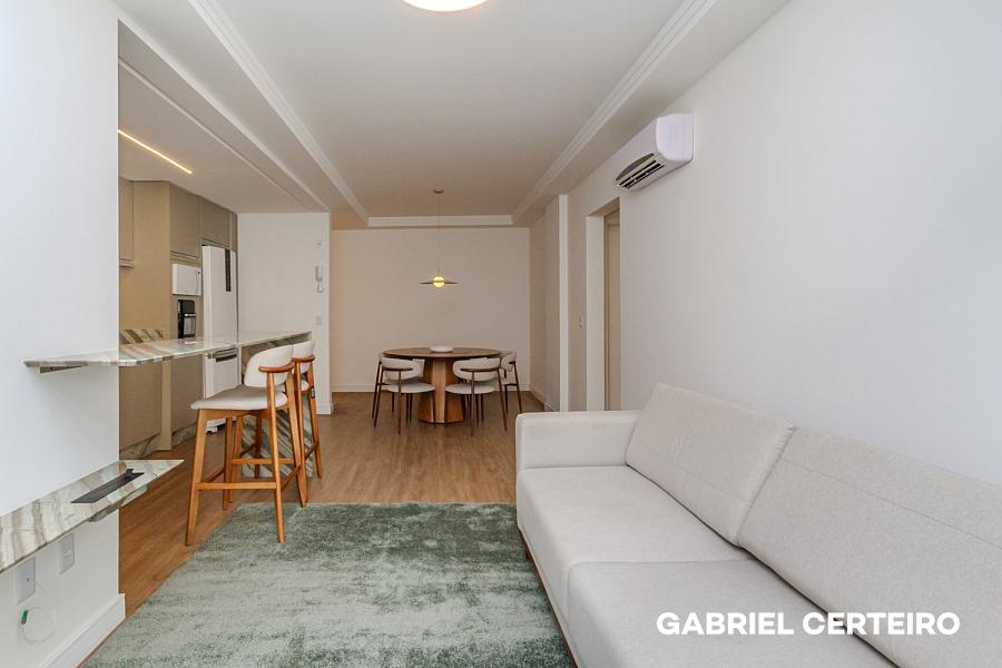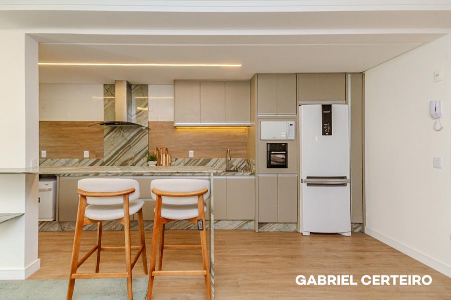 O imóvel passou por um processo completo de repaginação e entrega totalmente mobiliado e equipado, pronto para morar ou para ser colocado em uso imediato. Conta com living integrado, sacada, cozinha, banheiro de suíte e banheiro social — uma planta funcional que aproveita bem cada metro quadrado.