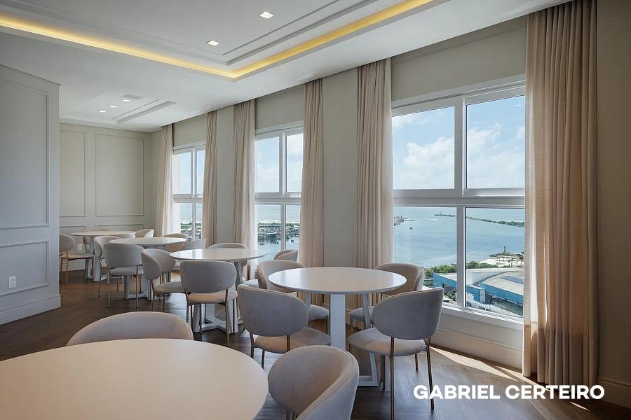 Torre única com 20 andares, sacada com churrasqueira a carvão, piso vinílico nas áreas íntimas, janelas com persianas elétricas, infra para automação, hall de entrada com pé direito duplo, monitoramento por câmeras, elevadores em alta velocidade, porcelanato nas áreas sociais, hobby box e bicicletário.