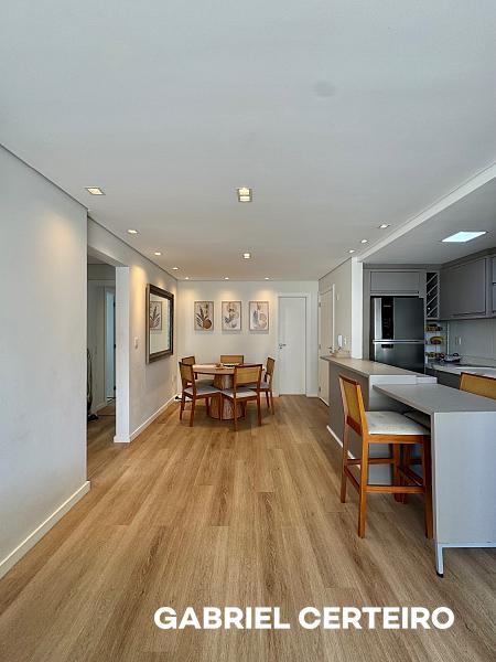 Esta unidade possui 107,49 m² de área privativa com planta bem resolvida, distribuída em 3 dormitórios, sendo 1 suíte, além de lavabo, sala e cozinha integradas, lavanderia e terraço com churrasqueira.