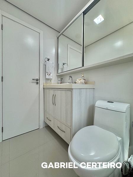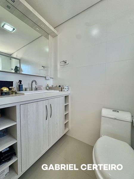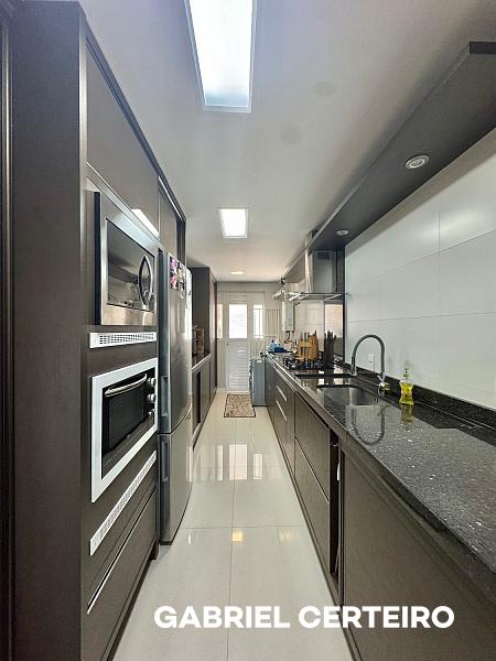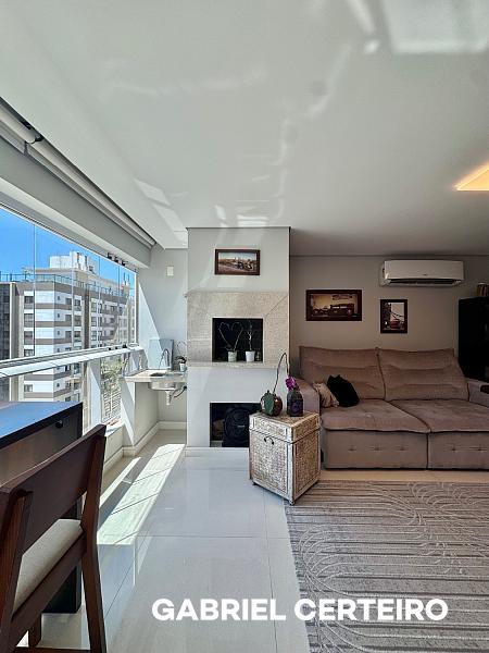O apartamento possui 3 suítes, cozinha, sala de estar e jantar, sacada integrada com churrasqueira a carvão e fechamento em reiki, linda vista para o mar e 2 vagas de garagem.