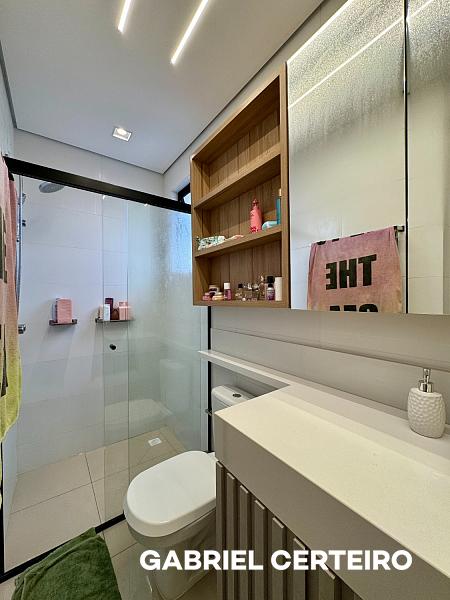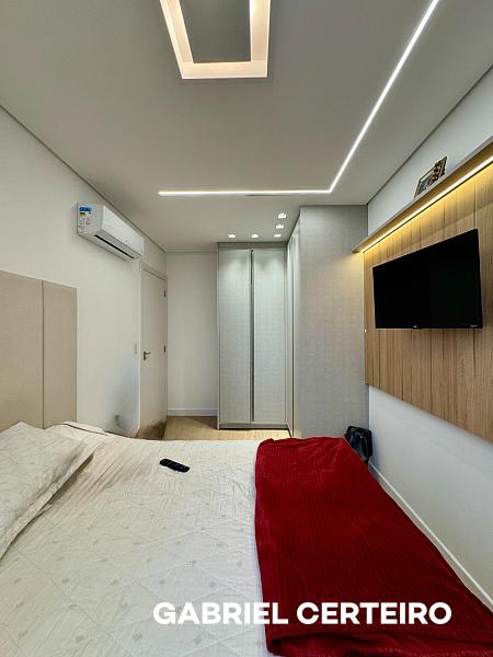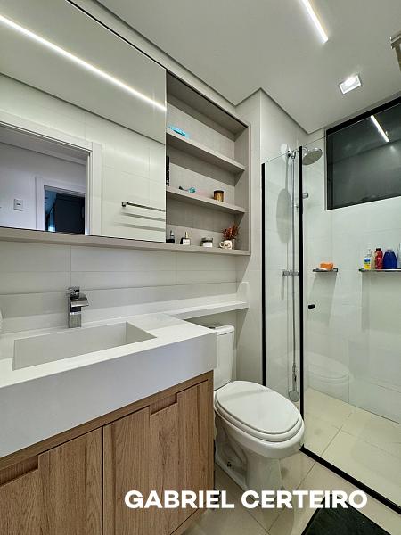 O imóvel apresenta acabamento de qualidade, com piso porcelanato nas áreas sociais, piso laminado nos quartos, forro de gesso em todos os ambientes e infraestrutura para ar condicionado split e aquecimento a gás.