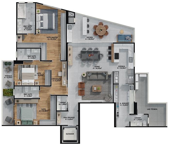 Cada detalhe foi meticulosamente planejado para oferecer uma experiência de vida única, combinando design arrojado, acabamentos sofisticados e uma localização privilegiada.