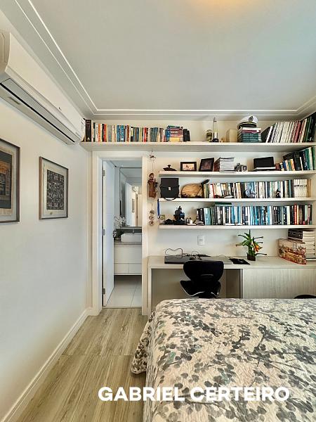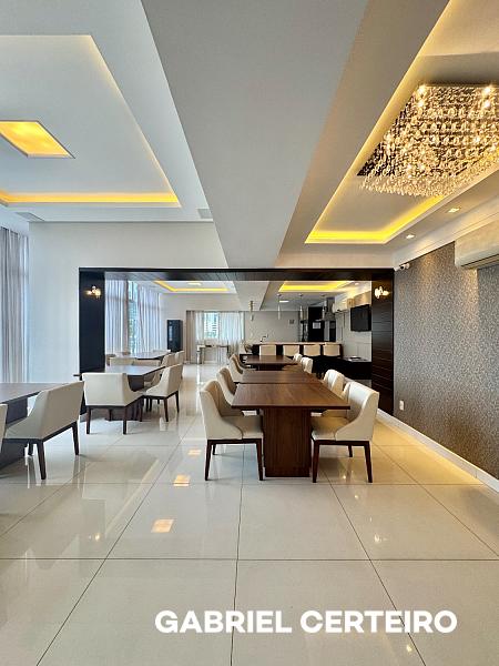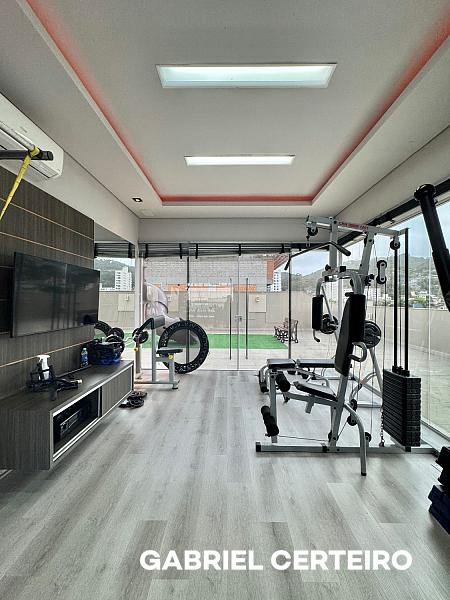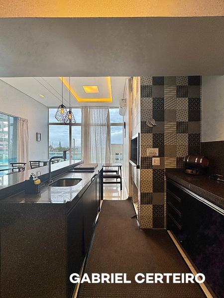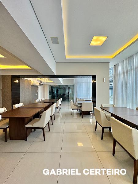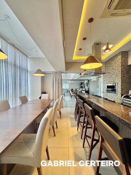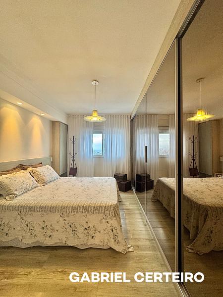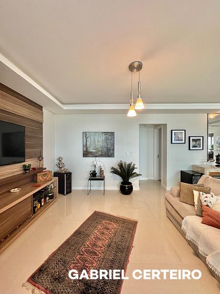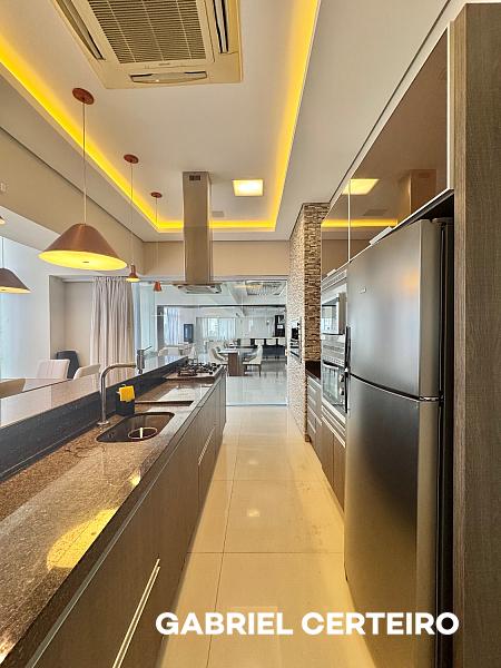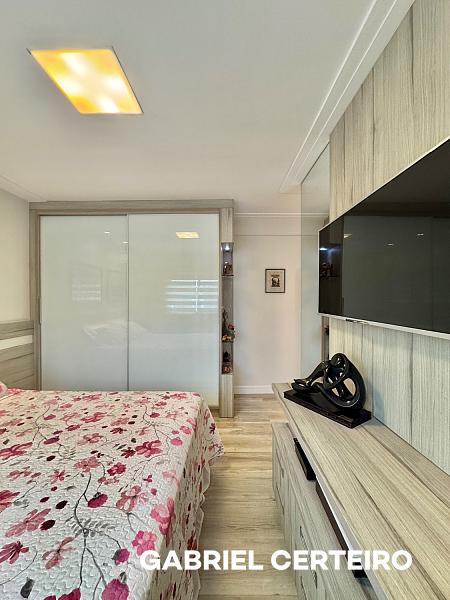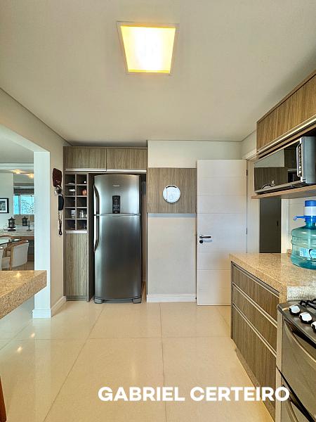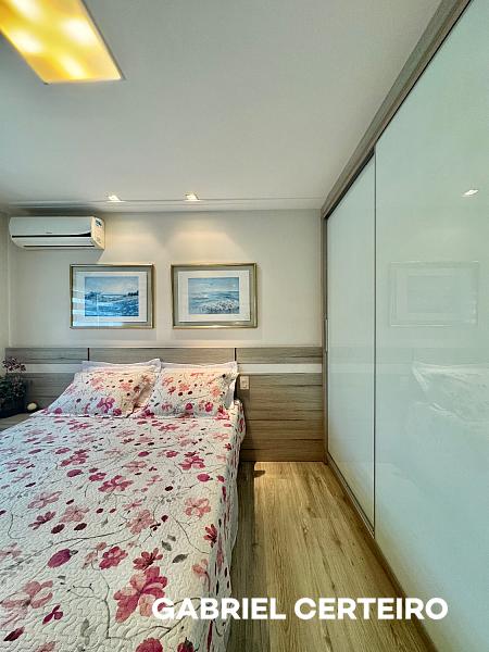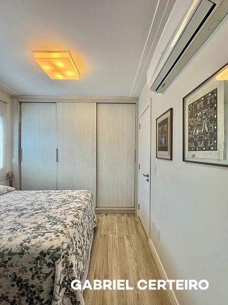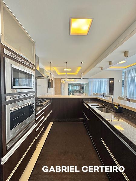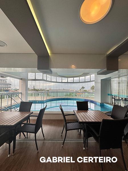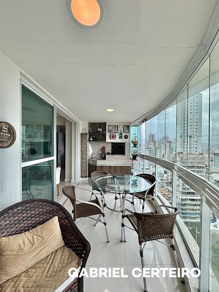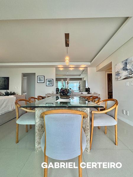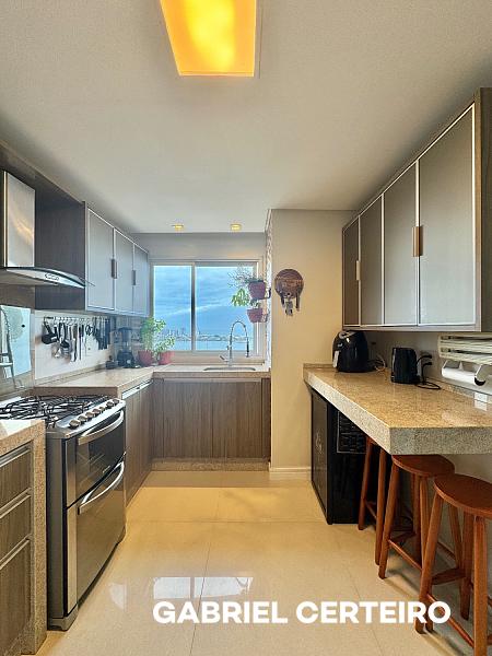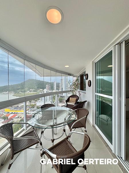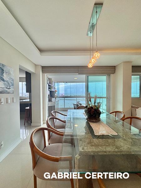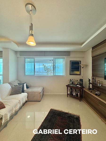 Apartamento no Edifício Brisa do Mar, em Itajaí. São 132m² privativos, com três suítes, duas vagas de garagem, living integrado à cozinha e sacada com churrasqueira. O imóvel está em andar alto, face leste, mobiliado e equipado com móveis sob medida e eletrodomésticos.