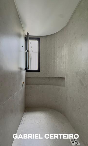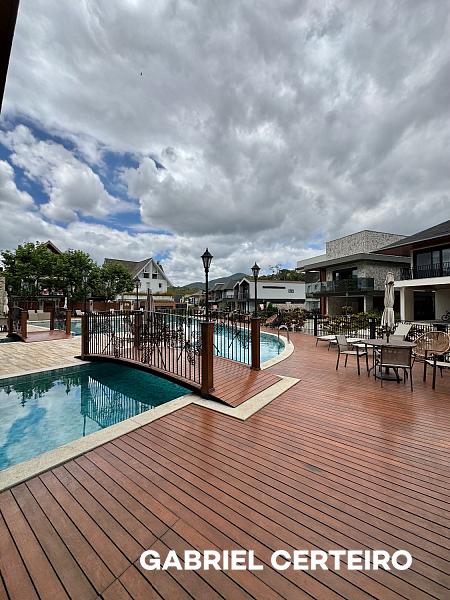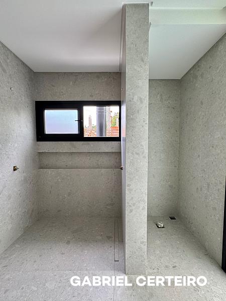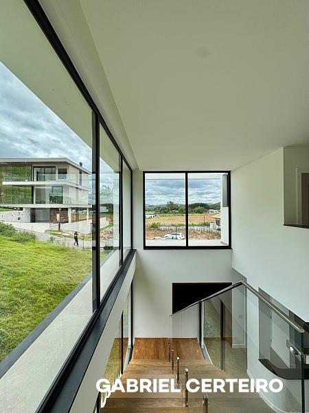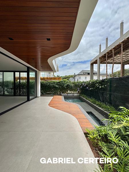 A casa conta com piscina privativa em concreto, infraestrutura para água quente, piso aquecido nos banheiros, porcelanatos 120x120, vinílico de alto tráfego, esquadrias Weiku com vidro térmico e acústico, portas Trada Alto Luxo, fechadura digital e infraestrutura para carregamento de carro elétrico.