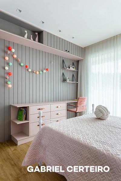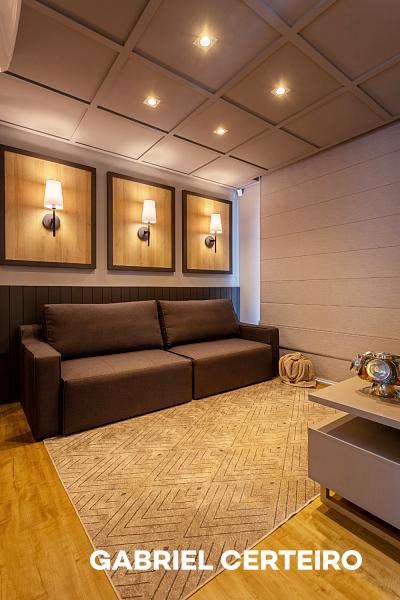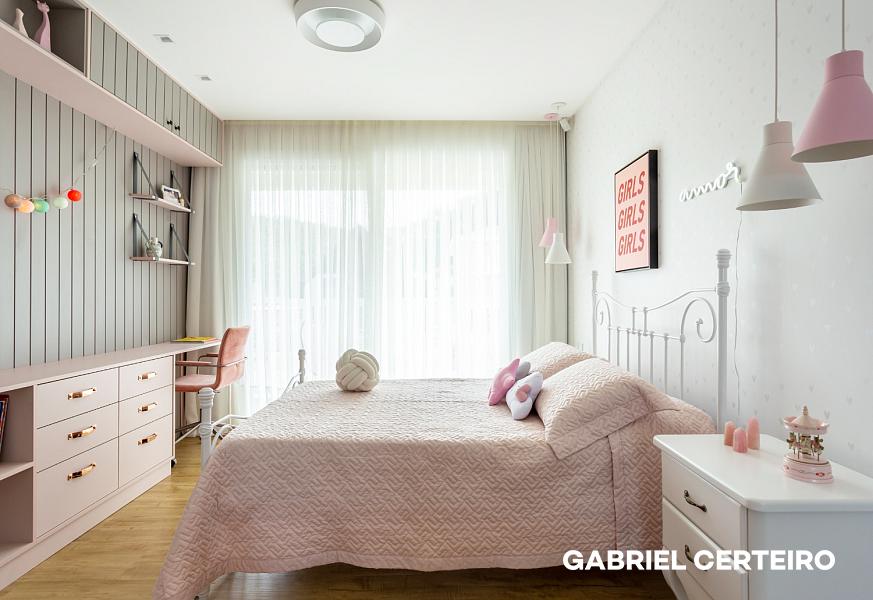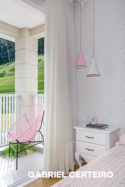 O imóvel conta com quatro suítes, sendo duas com closet e outras duas adaptadas como cinema e home office. O sótão é um espaço aconchegante, ideal para brinquedoteca ou área de lazer infantil.
