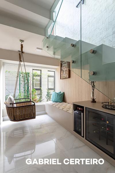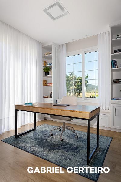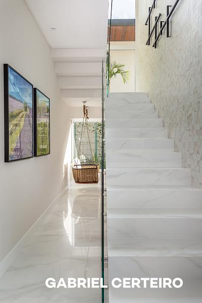 Entre os diferenciais da casa estão o piso vinílico nos quartos, piso aquecido em duas suítes, ar-condicionado em todos os ambientes, esquadrias em PVC, telhado Shingle e sistema de energia solar, que garante economia e sustentabilidade.