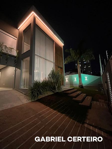 Entre os diferenciais estão a automação de som, ar-condicionado, cortinas, portão e venezianas; sistema de som integrado Frahm/LG; despensa; lavanderia ampla com varais sob medida; além de 2 lavabos (interno e externo). A garagem comporta 2 veículos cobertos e mais 1 descoberto.