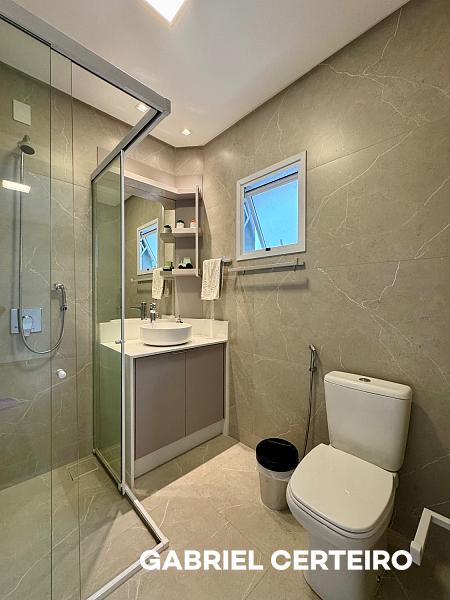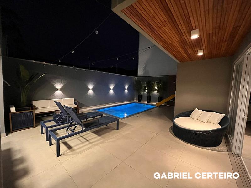 O projeto conta com 1 suíte master equipada com hidromassagem, chuveiros duplos e um amplo closet, além de mais 2 suítes espaçosas. A casa é vendida de porteira fechada, totalmente mobiliada e equipada, incluindo climatização em todos os ambientes e eletrodomésticos da linha Gourmand Brastemp na cozinha.