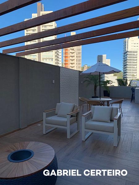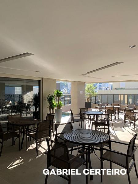 A área de lazer é completa e pensada para uso real, com piscinas adulto e infantil, espaço fitness, brinquedoteca e ambientes de convivência bem distribuídos. No terraço, o condomínio oferece salão de festas com área externa, lounge ao ar livre, deck para relaxar, espaço gourmet e rooftop decorado, criando um conjunto de lazer funcional e agradável.
